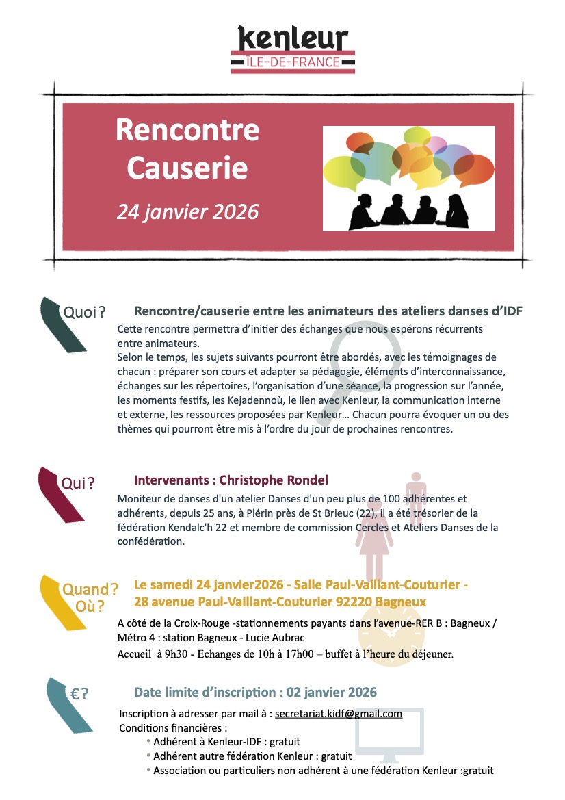 A compter du vendredi 19/12/2025, il faut adresser vos inscriptions à : federation-idf@kenleur.bzh